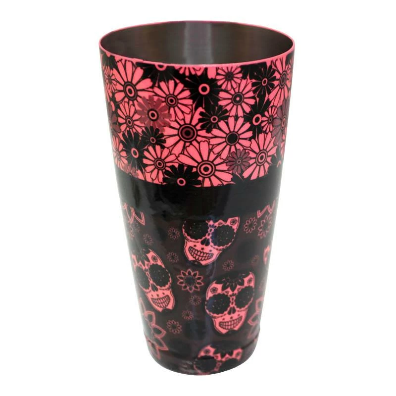 From the company who has brought you these popular shakers in an array of colors and textures, we are extremely excited to be able to offer you these custom printed shaker tin designs. Exclusive to BarSupplies.com, you will not be able to find these babies anywhere else. Still maintaining the professional features of the standard shaker, we added a colorful, cool and fun element to it. Stand out among other bartenders and sport this NEON Pink with Glitter Floral Skulls shaker tin design!
