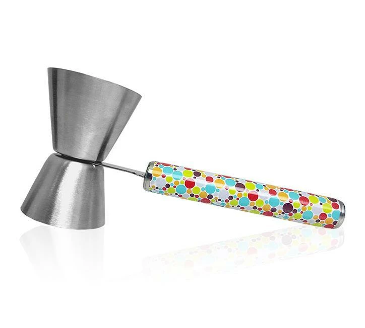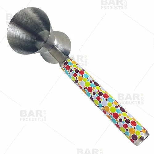 Easy to clean and durable, this sanitary handled jigger is growing in popularity. Bartenders, as well as home bar enthusiasts are loving the utility it offers. Now with this fun Retro Dots design, you can add some personality to your drink mixing showmanship.