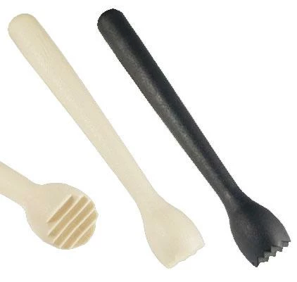 This muddler is a great example of standard size, weight and economics that works well in any bar setting.Made of sturdy polypropylene, this 8.5 inch muddler has a 1.25 inch base with ribbed muddler end . This Ribbed Muddler is available in either black or white.