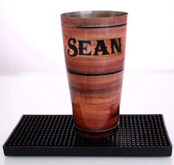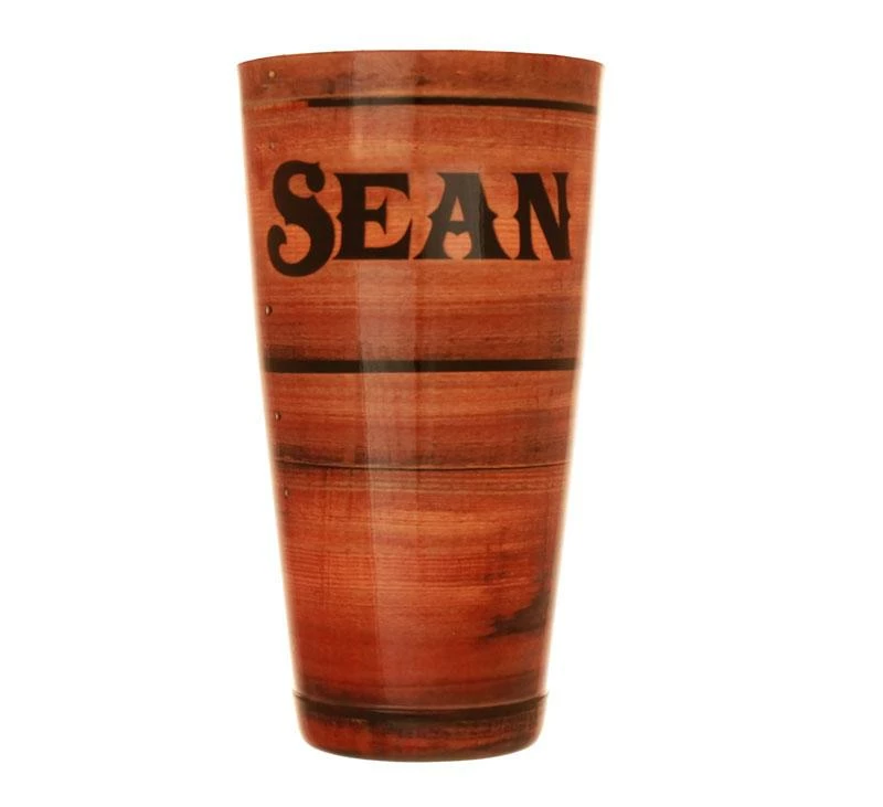 Would you happen to need a new cocktail shaker tin? How about this one of a kind Wood Pattern cocktail shaker with your name or text of your choice. This unique shaker tin is a BarSupplies.com exclusive product. Adding your name is an optional feature, but is certainly an awesome one! 28 oz cocktail shakers are the perfect size for pairing up with either 16 oz or 18 oz cheater tins, or can be used in conjunction with any mixing glass. So, whether you are mixing up delicious beverages at home or at work, you will certainly find plenty of use for this durable shaker tin!