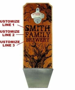 Best Pirce 🤩 Bars Custom Wall Mounted Wood Plaque Bottle Opener And Cap Catcher – Family Brewery 👍