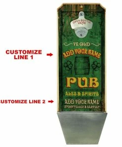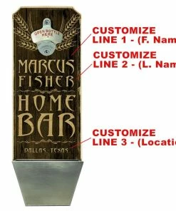 Best Pirce 🤩 Bars Add Your Name – Wall Mounted Wood Plaque Bottle Opener & Cap Catcher – Home Bar 🔥