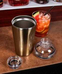 Best Sale π€© Bars Double Wall Vacuum Insulated Cocktail Shaker – 17 Ounce – Gold Sparkle β
