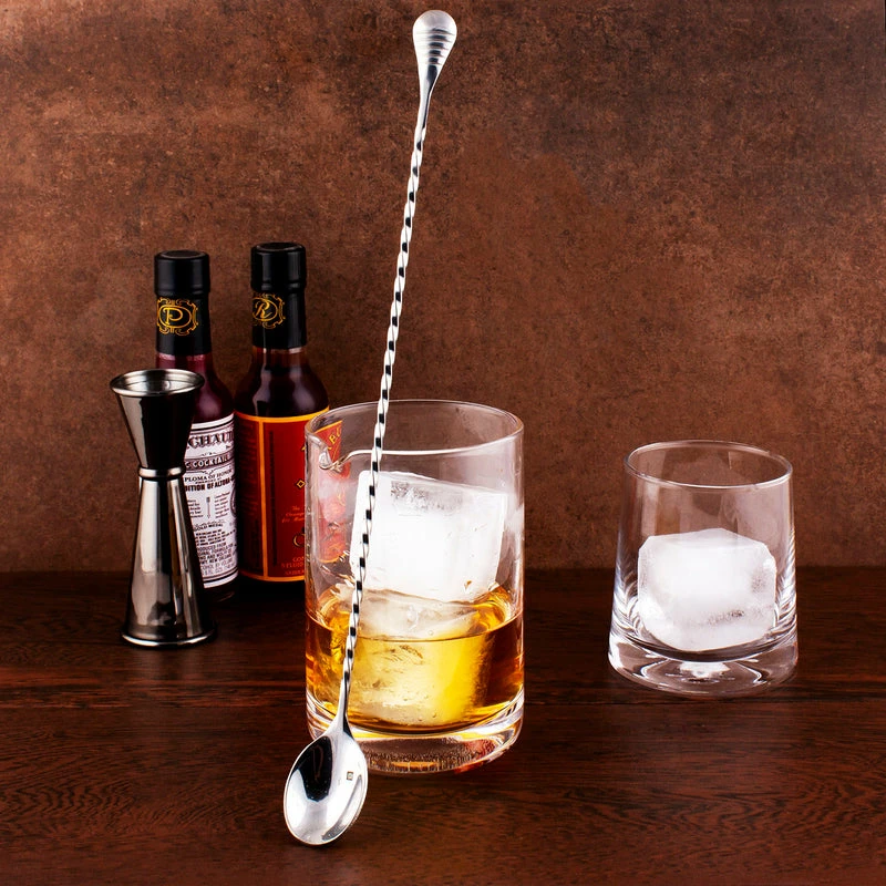 This elegantย twisted bar spoon is the ideal shape and size for smooth, balanced stirring and layering spirits. The flat end of this spoon is great as a micro muddler. It measures 12.5″ in length and is safe to use in the dishwasher.