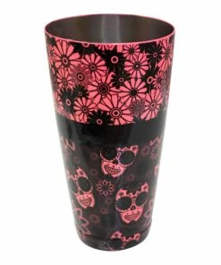 Discount 💯 Bars Printed Cocktail Shaker Tin – NEON Pink Glitter Floral Skulls – 28 Ounce Weighted 🛒